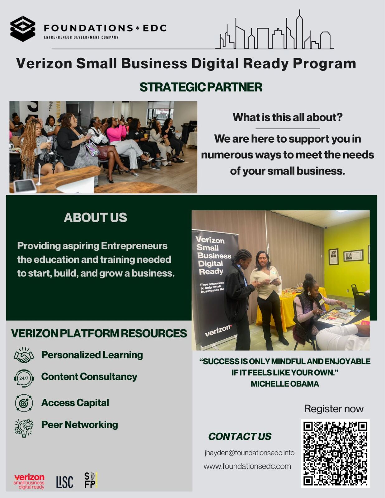 A free, online platform, designed by small business owners for small business owners. Digital Ready offers more than 50 on-demand courses on topics like AI, social media marketing, financial planning, and more; a full calendar of virtual events to connect business owners with experts and peers; and incentives, including the opportunity to apply for $10,000 grants, exclusive for Digital Ready members. CLICK HERE to access the Verizon Digital Readiness Platform Today!